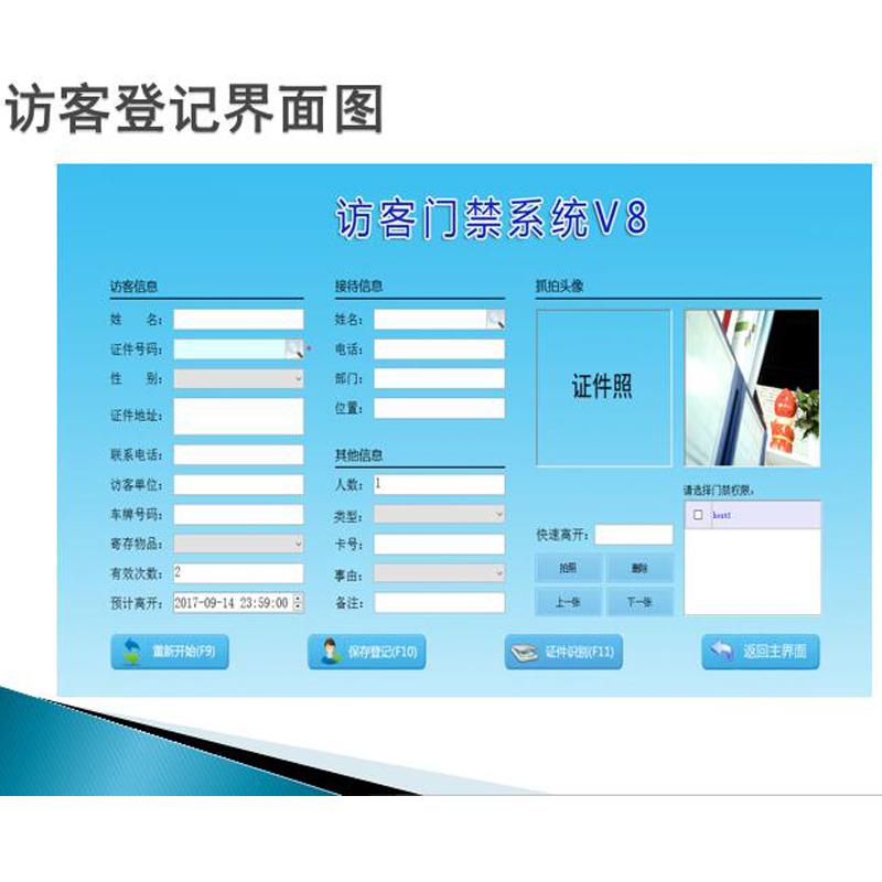 Research and development of visitor access control management system visitor registration system brushed second-generation ID card registration authorization access control authority
