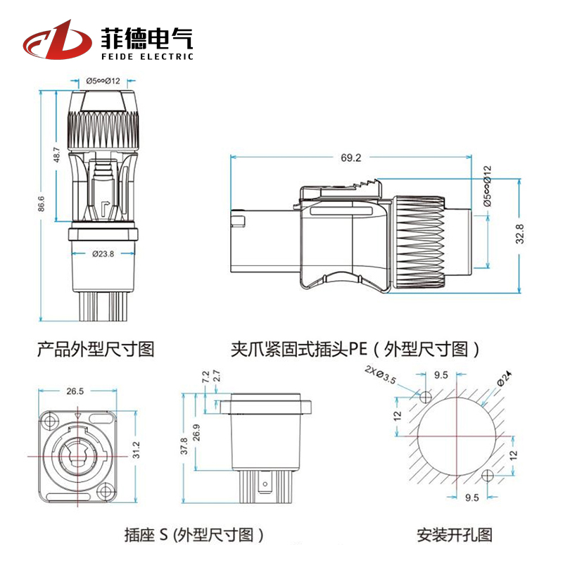 Waterproof three-core aviation power plug head power discharge Ohm connector LED display power plug
