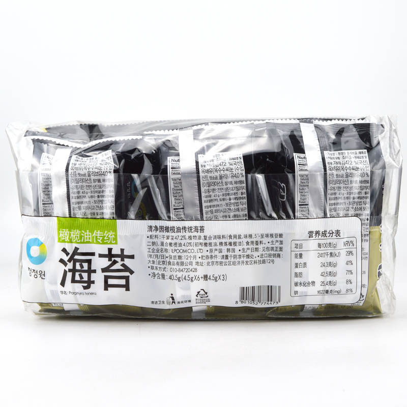 South Korea Imports of Clean Garden Olive Oil Traditional Sea Moss Imported Purple Vegetables 9 Even 40 5g ready-to-eat snacks sea tundra