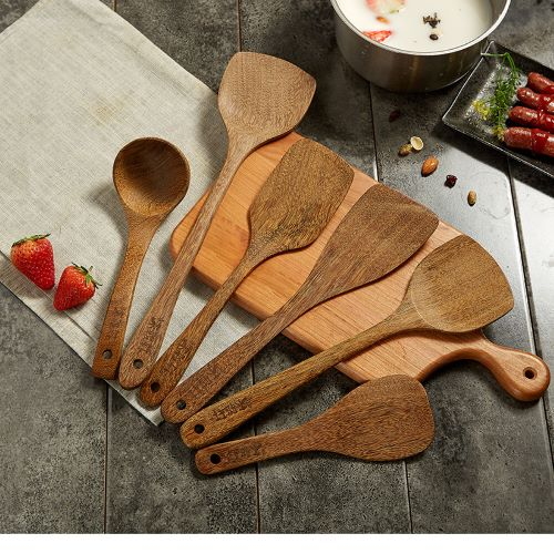 Mu Yaxuan kitchen wooden shovel stir-fry high temperature solid wooden spatula set Non-stick pot Wooden shovel spoon household kitchenware