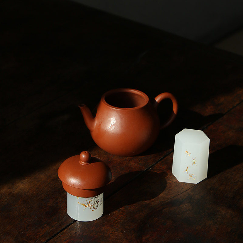 Glazed White Jade Lid Placed Glazed Cover Handmade Glass Pot Lid Nursery Small Tea Spotting Piece Kutian Tea Accessories