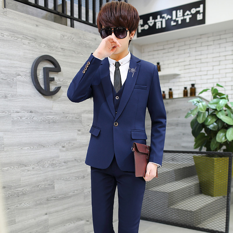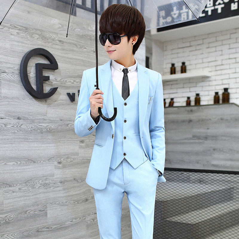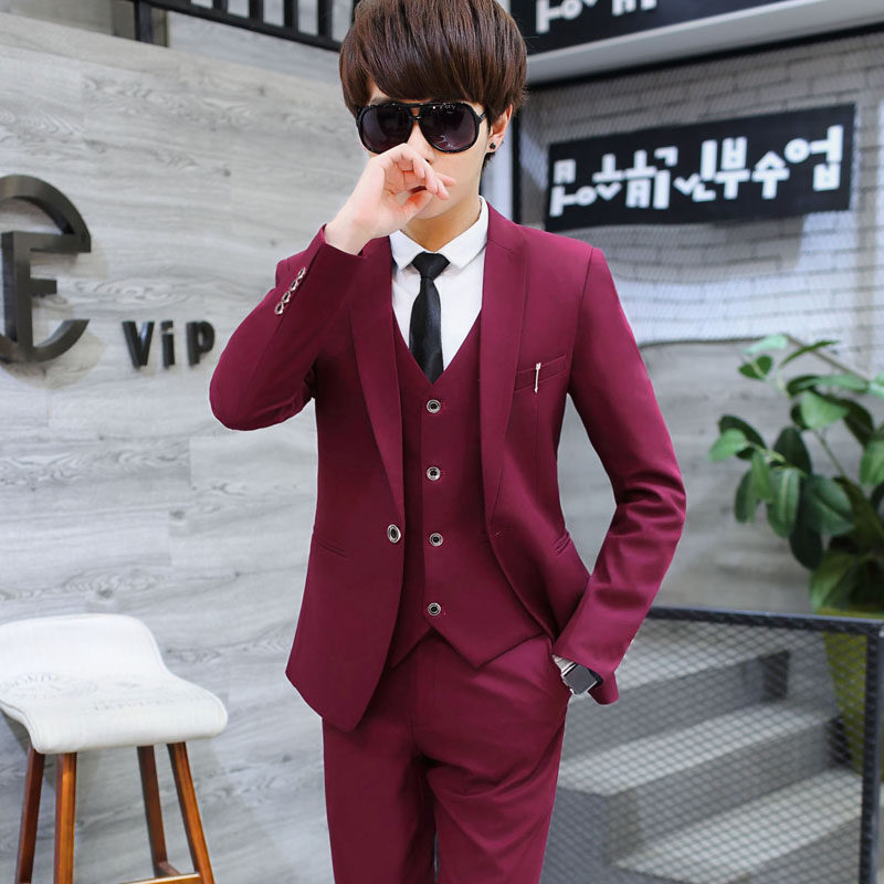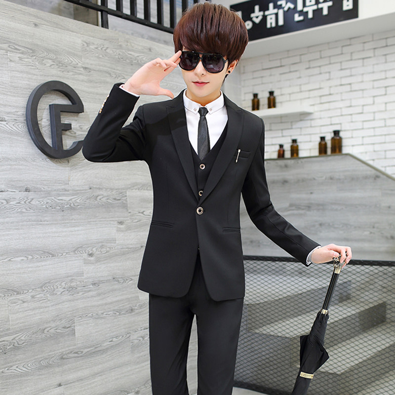 Teenage West Suit Suit Men's Body Han Version Trend Casual Little West Suit Three Sets Men's Handsome Pure Color Suits