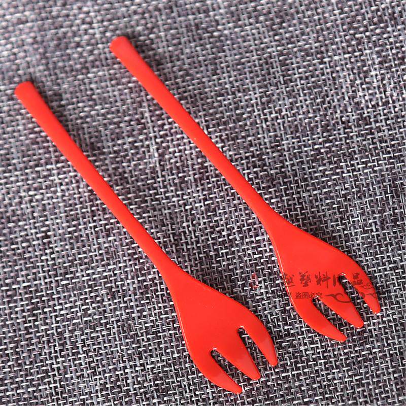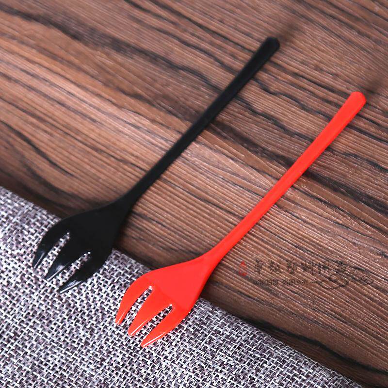 Disposable plastic fork mini three-finger fork 10CM fruit fork black red cake fork 500