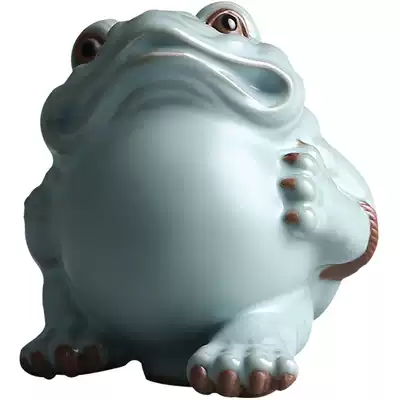 Yuanbendao Ruyao tea Pet decoration boutique can raise open pieces of Ru Porcelain lucky three-legged gold Toad Kung Fu tea set tea play