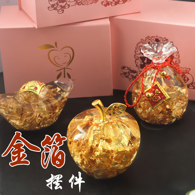 24K gold leaf crystal apple fowbag Yuanbao Process Gift Crafts Gifts Swing Accessories for Christmas gifts Taiwan Creative Gifts