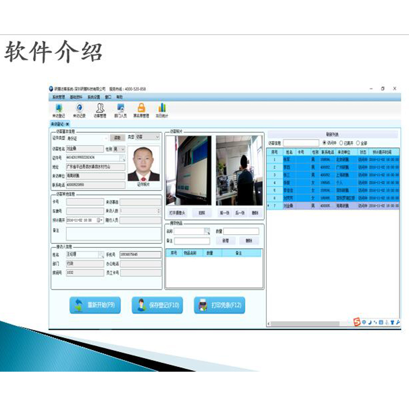 Research And Tem Visitors Registration System YT-F1 Community School Gate Guard Visiting Personnel Second-generation License Identity Recognition Software
