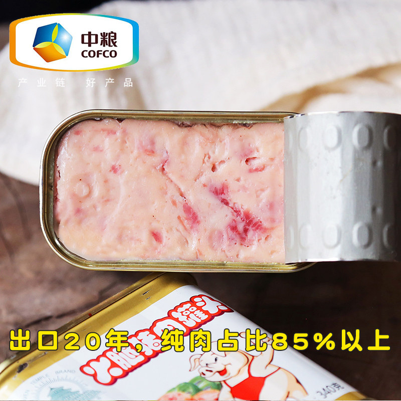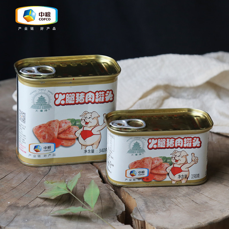 COFCO luncheon meat Tiantan brand white pig canned 340g ham and pork instant food hot pot ingredients