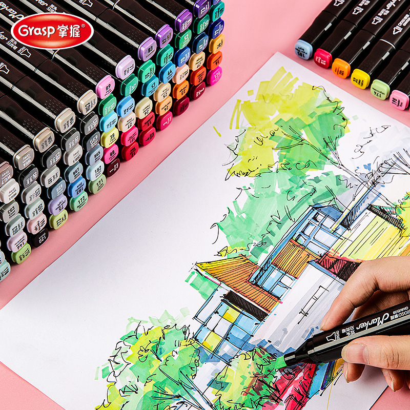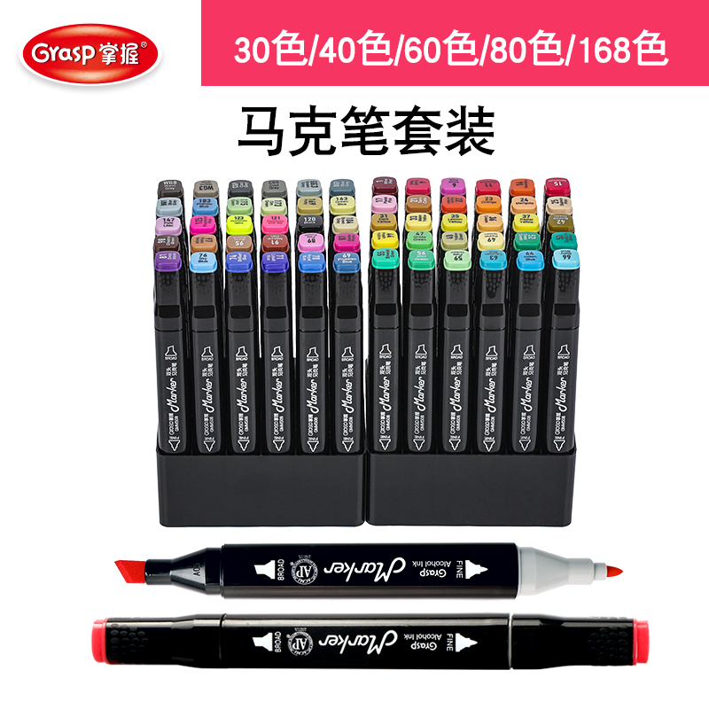 Master the double-headed microphone pen set touch student painting brush alcohol oil art students special 30 colors 40 colors animation 60 colors 80 colors 168 colors full set of quick-drying color watercolor pens