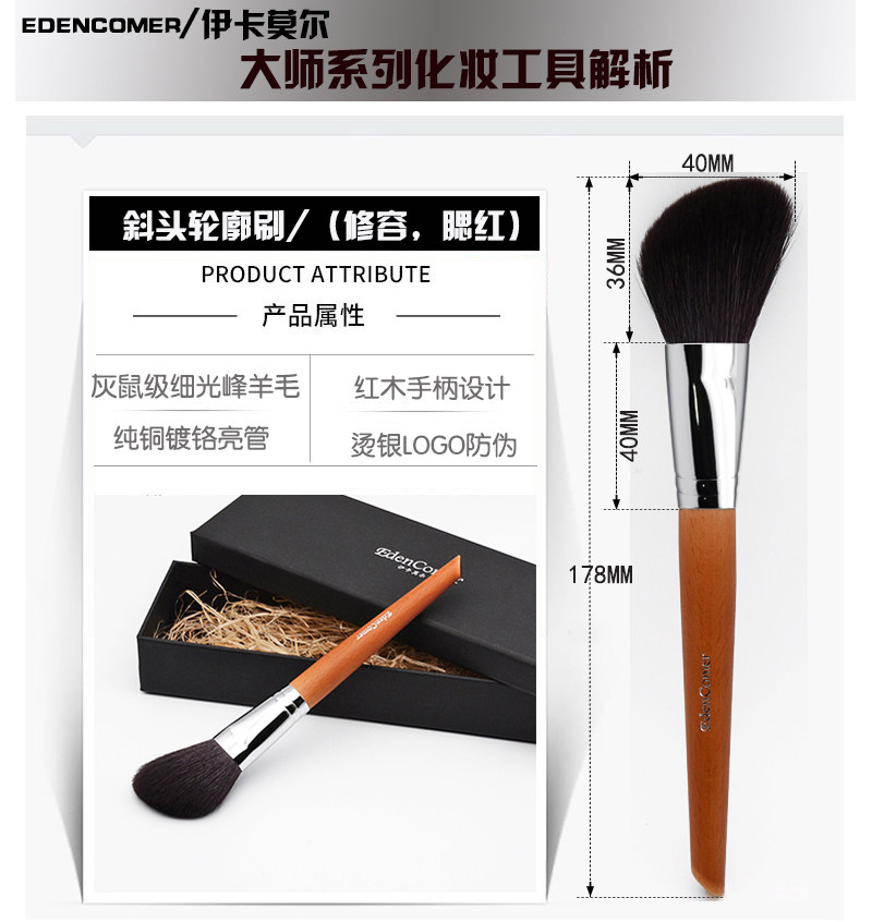 Edencomer Premium Ultra Soft Pure Wool Contour Brush Blush Brush Angled Shadow Silhouette Contour Brush