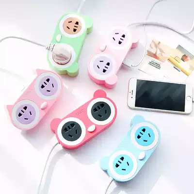 Home creative socket with usb cartoon cute small socket with switch terminal block row plug mobile phone charger