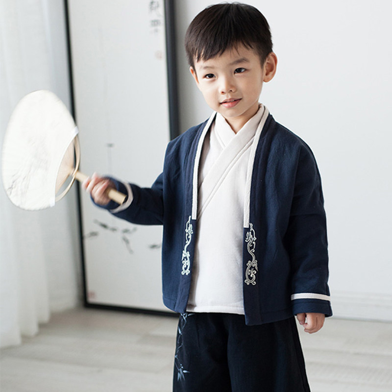 Broken code clearance Hanfu children's clothing improved spring and autumn single layer boy baby Tang suit winter plus velvet thickened children's jacket