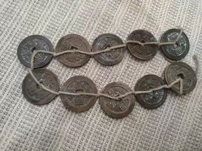Antique collection of Qing Dynasty antique ten emperors copper coins, square kongqian town house evil spirits ten sets of 33 yuan