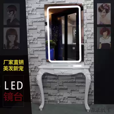Beauty hairdressing mirror European style shop mirror table LED light luminous mirror hair cutting wall-mounted hair salon mirror factory direct sale
