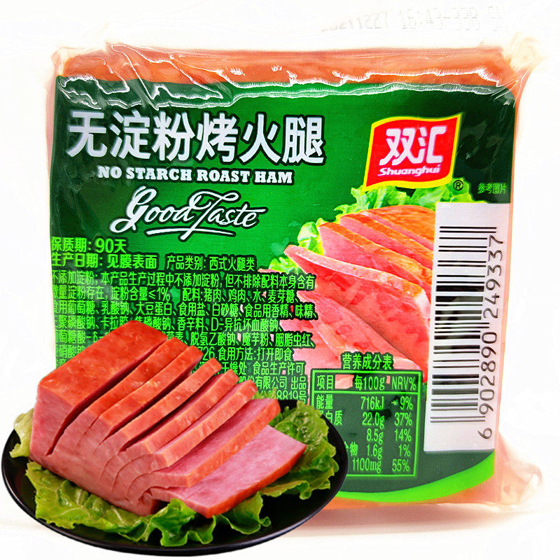 Shuanghui starchless roasted ham 200g*18 bags Instant ham cooked smoked flavor lunch meat ham sausage