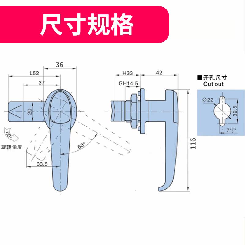 Distribution box lock plate hand lock electric cabinet control cabinet tool cabinet handle lock switch cabinet door link lock waterproof cover