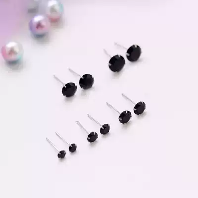 Small Z excellent product 925 sterling silver black rhinestones basic simple raising ears male and female couples mini personality ear pin student
