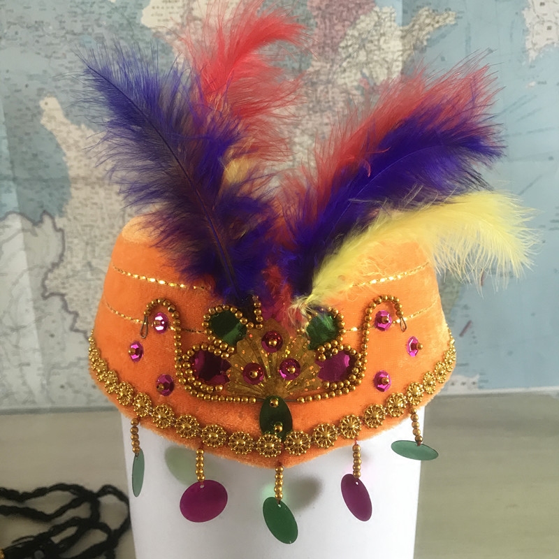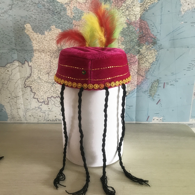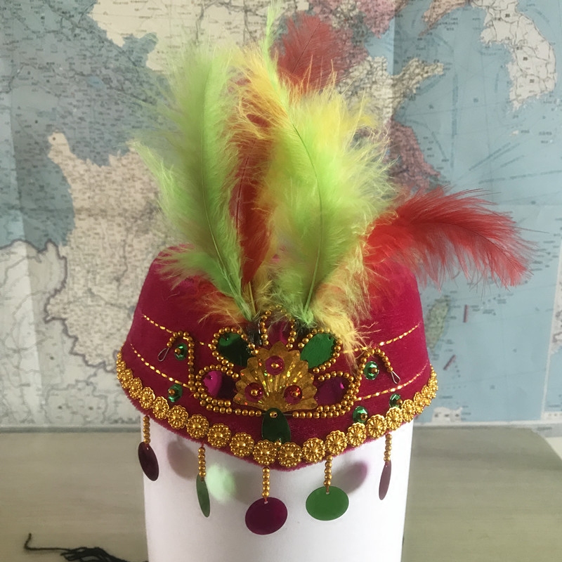 Xinjiang Uygur ethnic hat dance children's hat girl little flower hat performance show props head decorated with feather hat-Taobao
