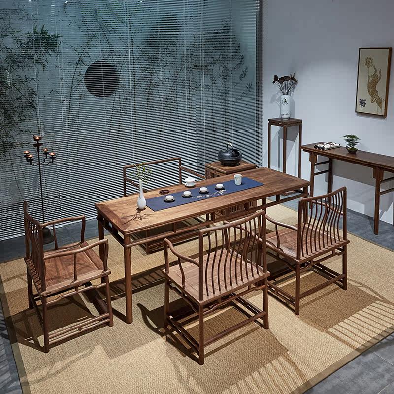 Old elm paint-free tea table North American black walnut tea cabinet North American black walnut tea table North American black walnut guest chair North American black walnut main chair Old elm paint-free tea cabinet Old elm paint-free main chair Old elm paint-free guest chair