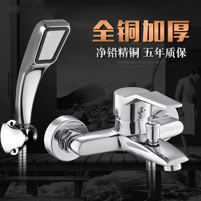 Full copper shower tap switch hot and cold water bath concealed triple mixed water valve water heater shower head suit