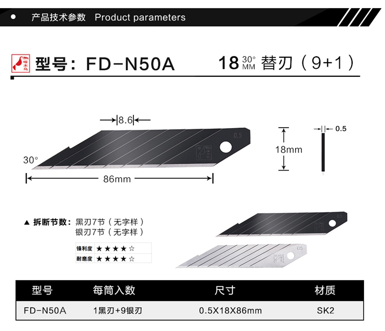 Woodpecker sharp blade wallpaper 30 degree blade 18mm large blade fine blade FD-N50A