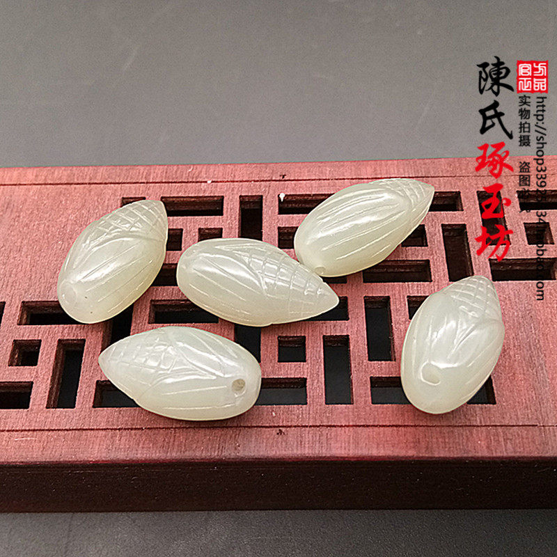 And Tian Yuqing white jade small corn spike jade pendant DIY hand-decorated grain earrings mean fruitful
