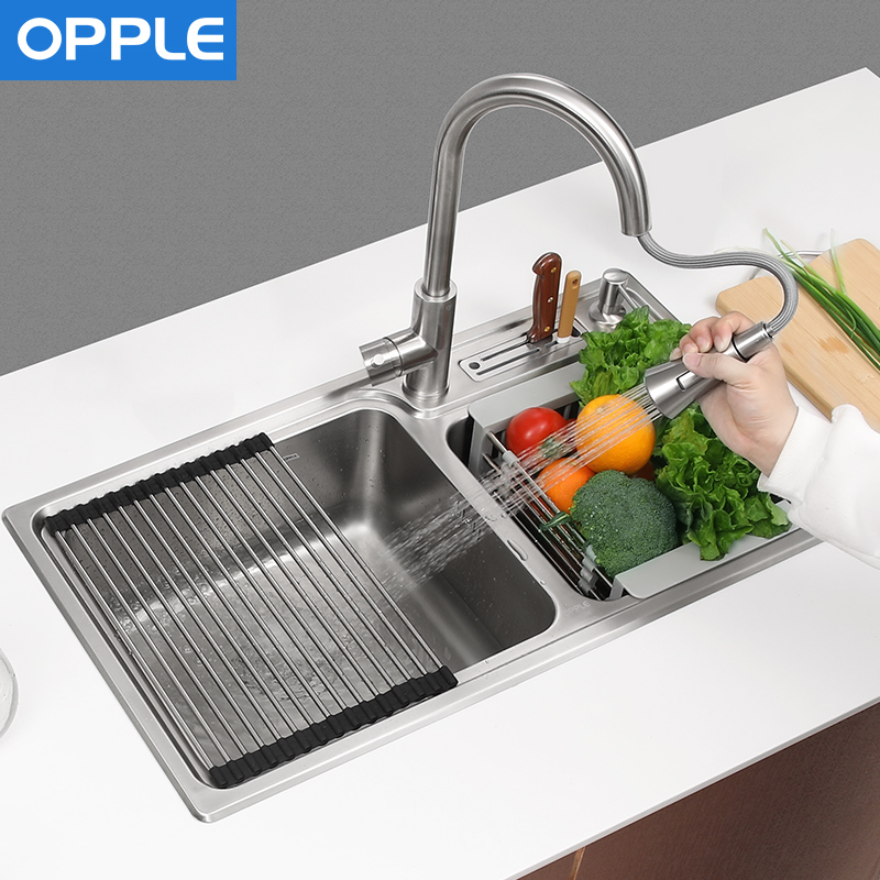 OPPLE 304 stainless steel large double sink sink thickened sink sink sink with faucet set Q