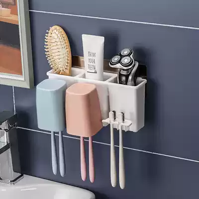Powder room non-perforated toothbrush holder rinse Cup toothbrush set suction type toothbrush holder wall Cup