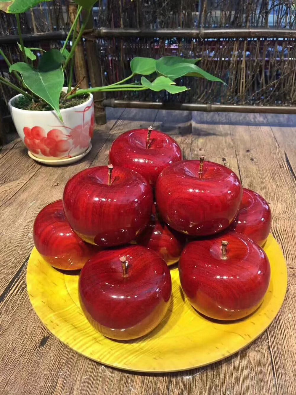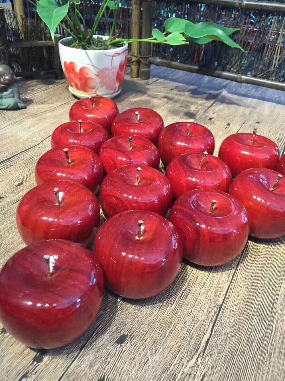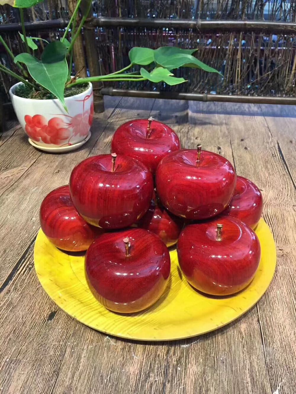 Red Wood Crafts Red Sandalwood Golden Silk Nanwood Solid Wood Fruit Apple Pendulum With Safe Fruit Handlebar Pieces Christmas