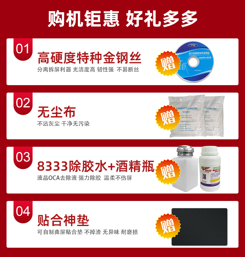 668 Conformable de-bubble All (no need to take external YD-186 clinging to the bubble machine (requiring external pump) YD-186 Three sets of YD-932 separator 936V rotary separator