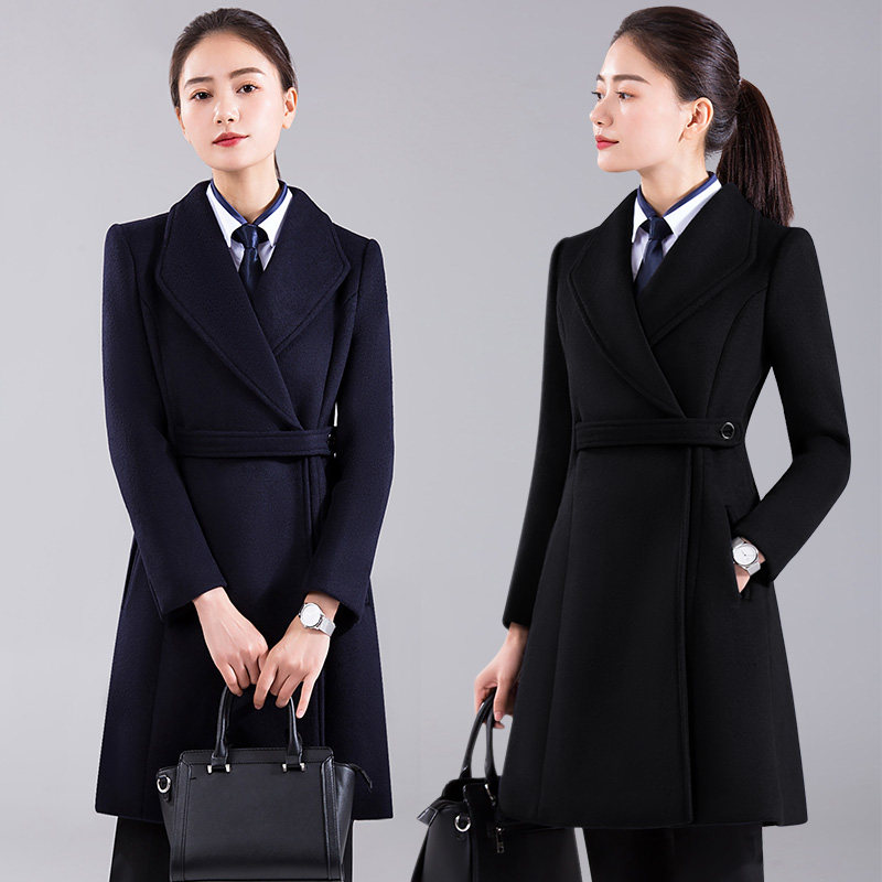 Professional woolen coat women's mid-length cotton thickened woolen coat jewelry store teachers work clothes tooling winter
