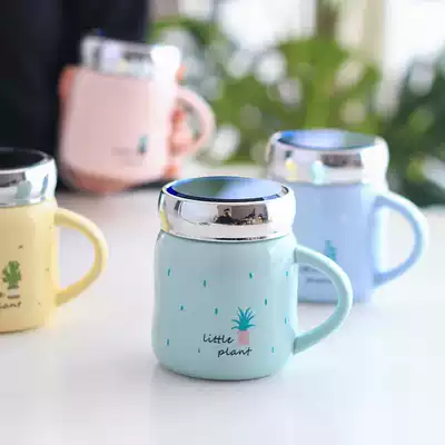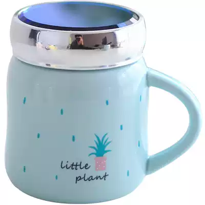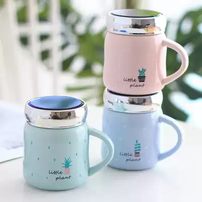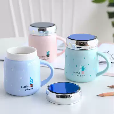 Korean version of cute ceramic mug simple creative girl student literature and art fresh household water cup with mirror cover