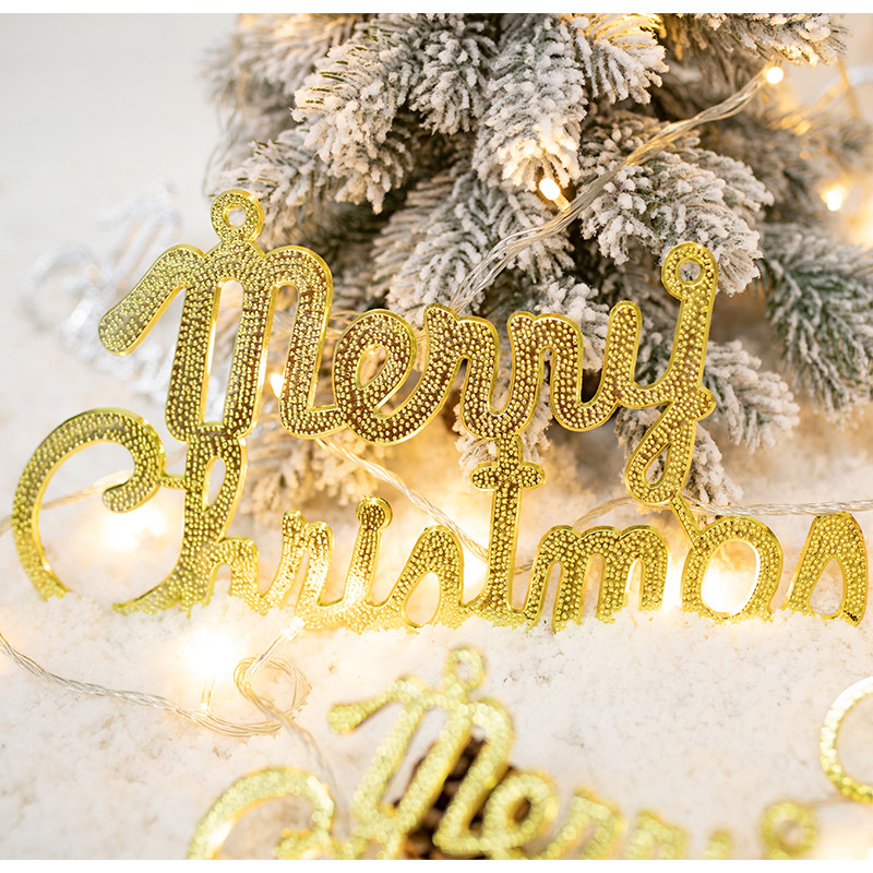 Merry Christmas English Alphabet Card Gold Silver Merry Christmas Christmas Tree Ornament Hanging Ornament