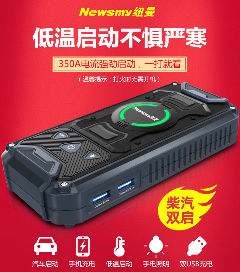 Newman car battery emergency start power supply 12v mobile charge start emergency rescue fire ride artifact