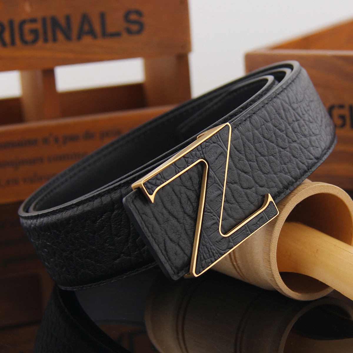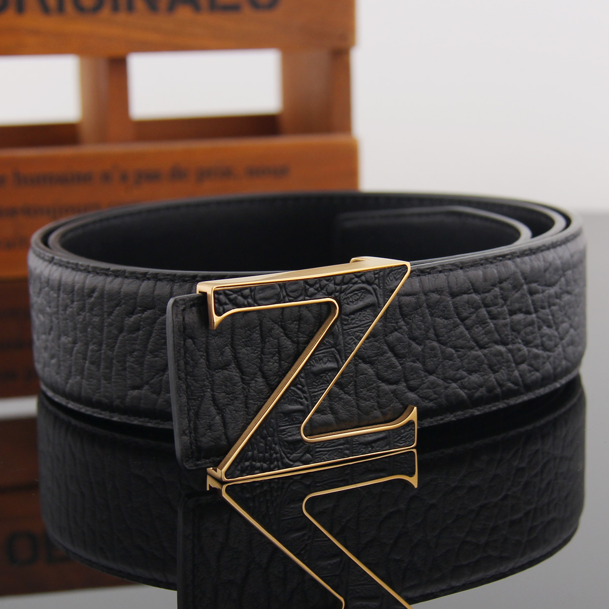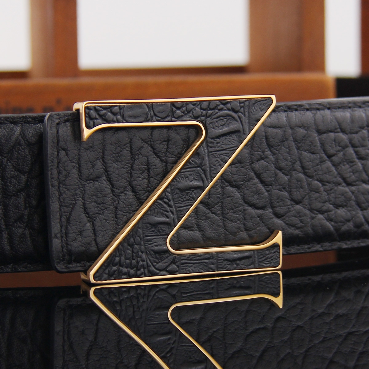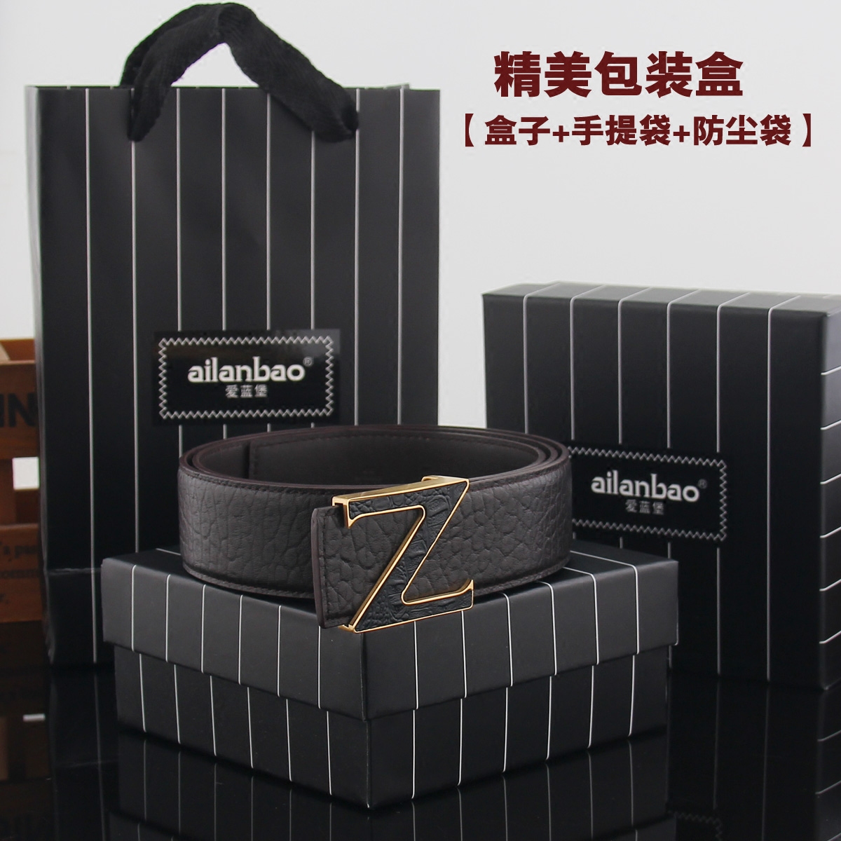 Ailanbao crocodile grain first layer cowhide men's belt stainless steel Z-shaped smooth buckle leather belt youth business