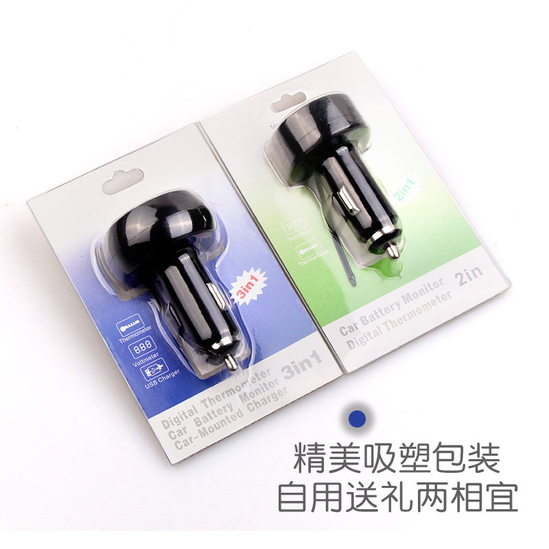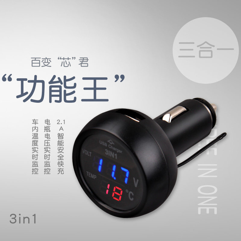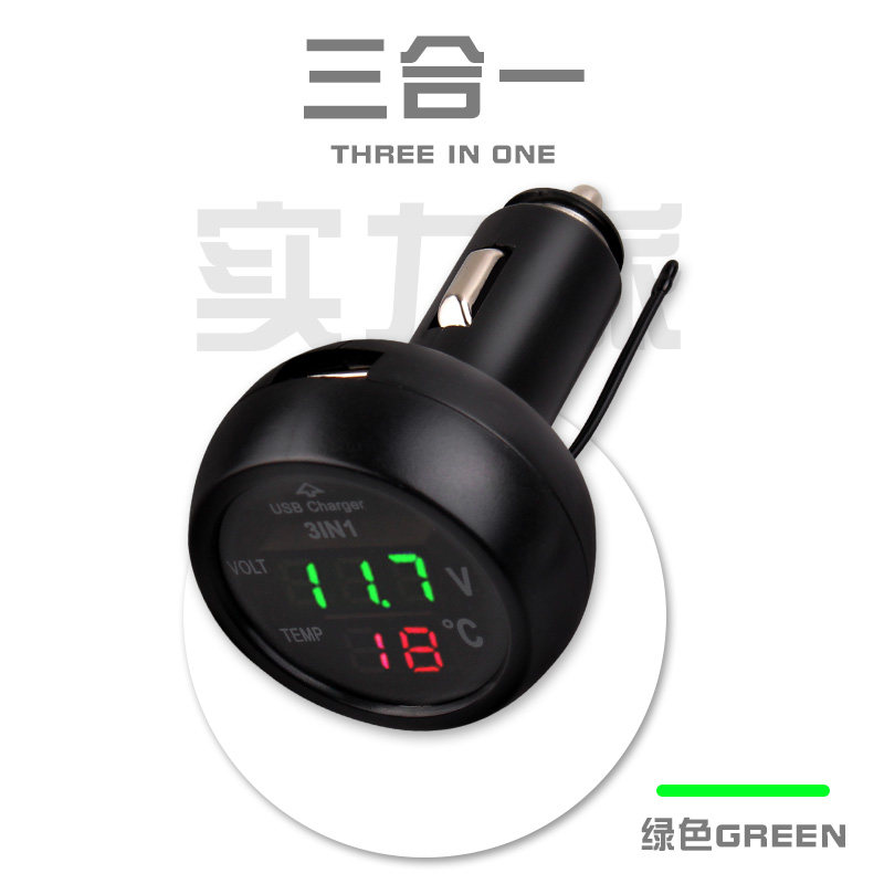 Automobile three-in-one charger vehicle load cigarette lighter with voltage detection USB monitor multi-function monitoring meter