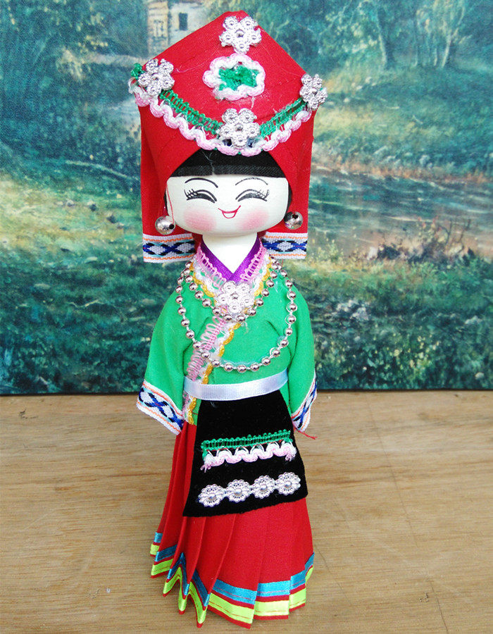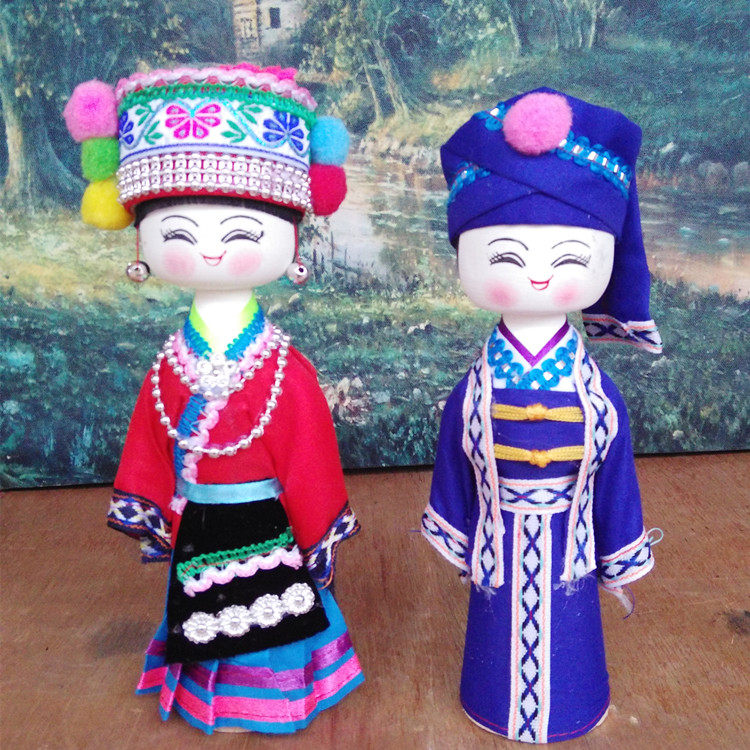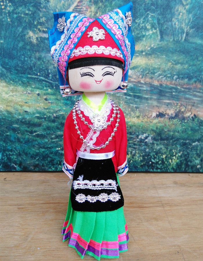 Yunnan Guangxi Ethnic Minority Dolls Handmade Puppet Burqon Handicraft Swing Adorned Wood Toys Teaching Eva