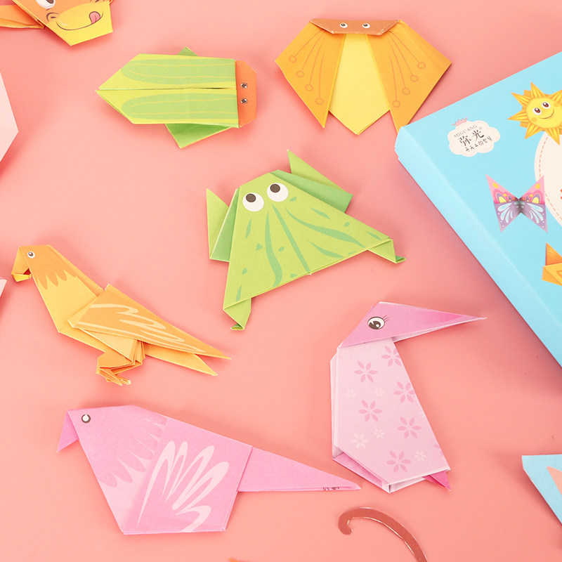 Handmade Folding Paper Materials Dazzling Folding Paper 3D Solid Animal Folding Paper Book Kindergarten Children DIY Handmade Colorful Thickening 14 cm Square Folded Paper Book Big