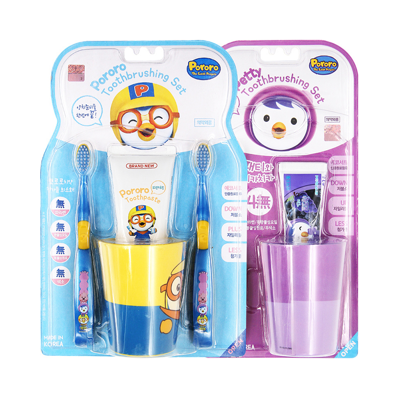 New Petty four-piece set(2 toothbrushes and 1 90g toothpaste) New Dinosaur four-piece set(2 toothbrushes and 1 90g toothpaste) New Bo Lele four-piece set(2 toothbrushes and 1 90g toothpaste)