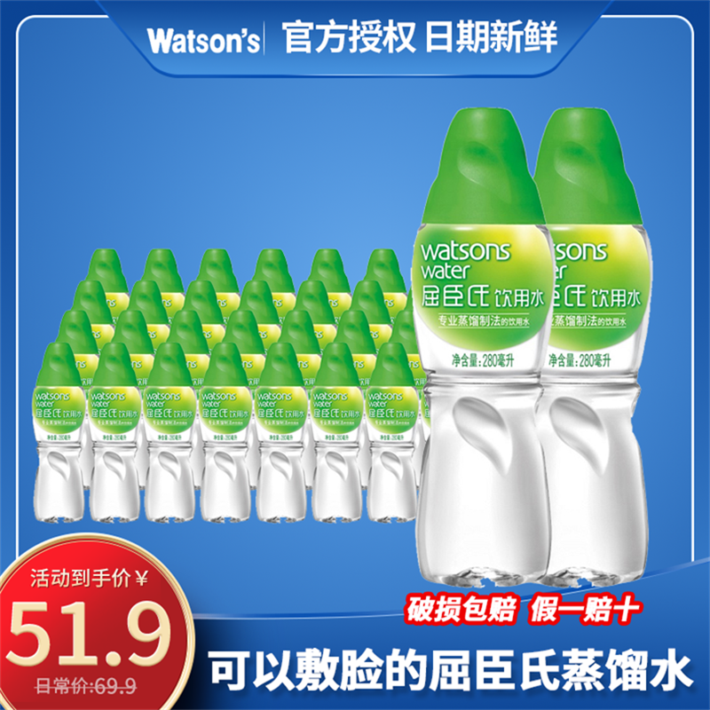 Küchen's distilled method of drinking water 280ml * 32 bottles of whole box distilled water mask Good partner Multi-province