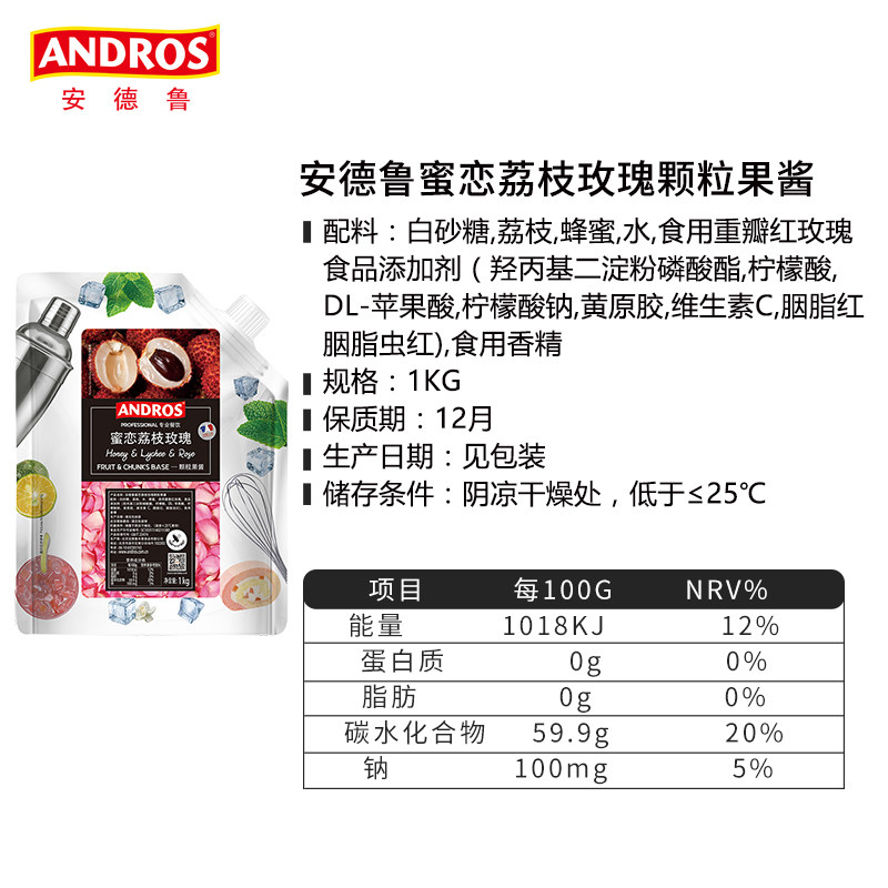 Andrew Honey Love Litchi Rose Granular Jam 1KG Brewing Beverage Baking Milk Tea Shop Seasoning