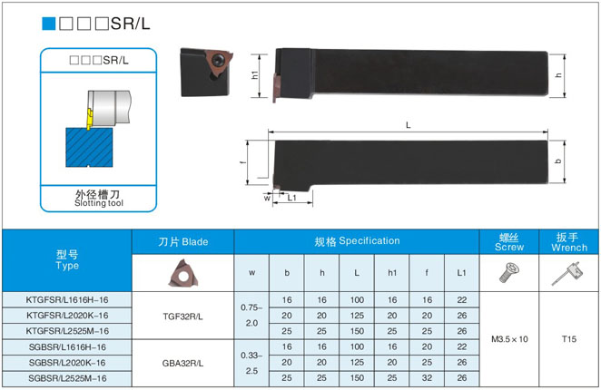 Outer diameter cut trough knife-lever shallow trench knife KTGFSL KTGFSR 2020K22 2525M22 2525M22 TGF43R blade