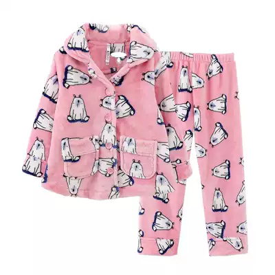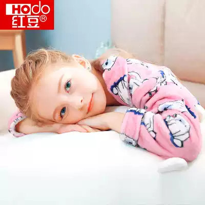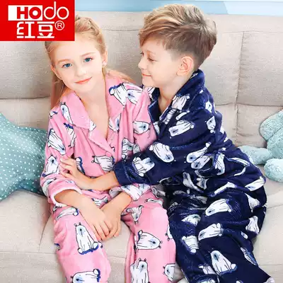Red bean children's warm pajamas winter coral velvet thickened girl child flannel boy home suit suit