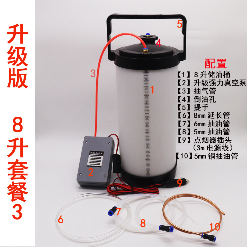 8 liter package 58 liter package 48 liter package 38 liter package 2 vacuum pump (strong)-crocodile clamp electric vacuum pump (strong) - cigarette lighter charge plus base oil