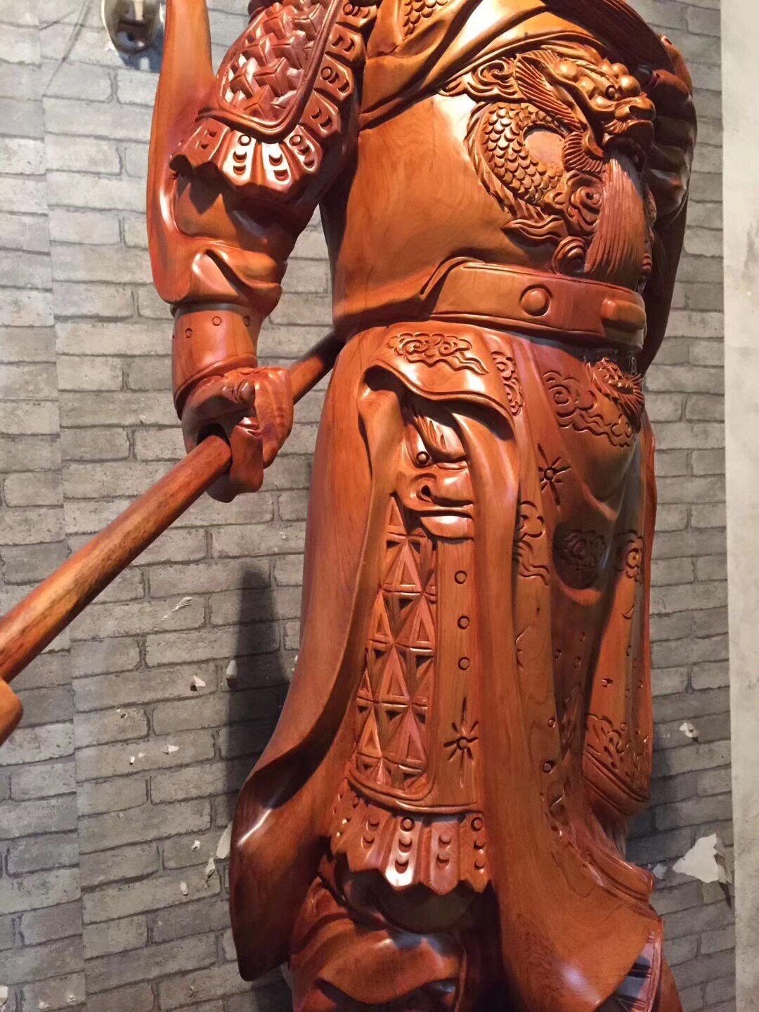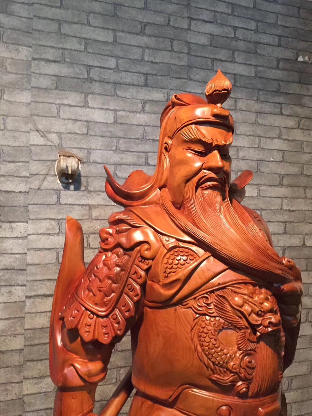 Wood carving Kuan Kung Buddhist statues Swaying Pieces of yew Yew Solid Wood Properties of Caijin Wu Caishen Living room Town Residence to worship the red wood handicraft