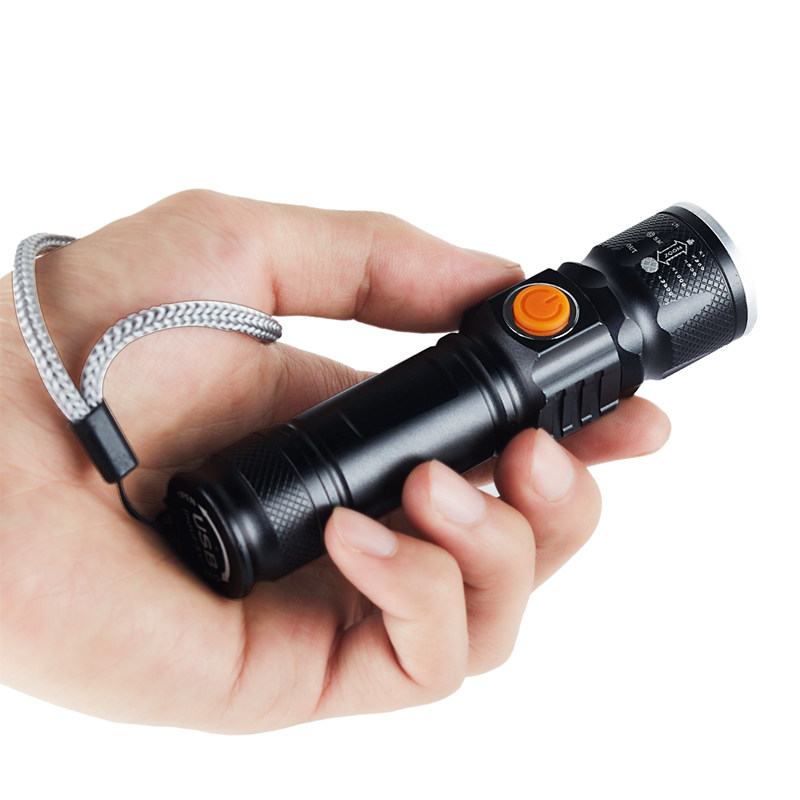 LED high light small flashlight Ultra-bright long-range USB rechargeable zoom outdoor household mini waterproof alloy flashlight