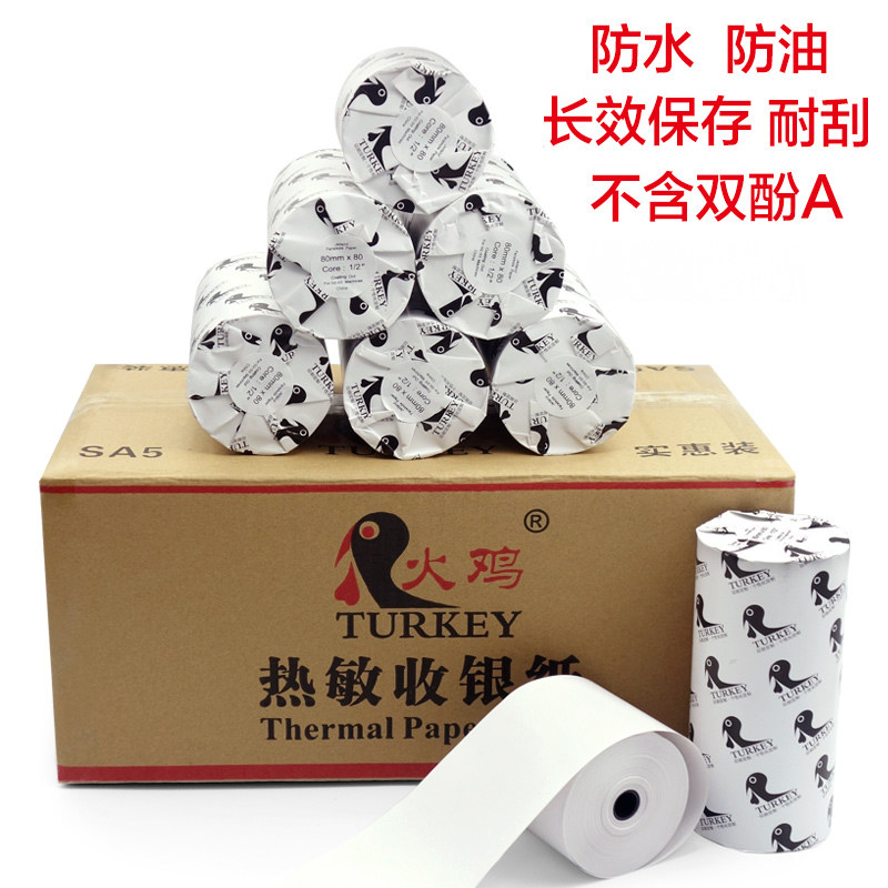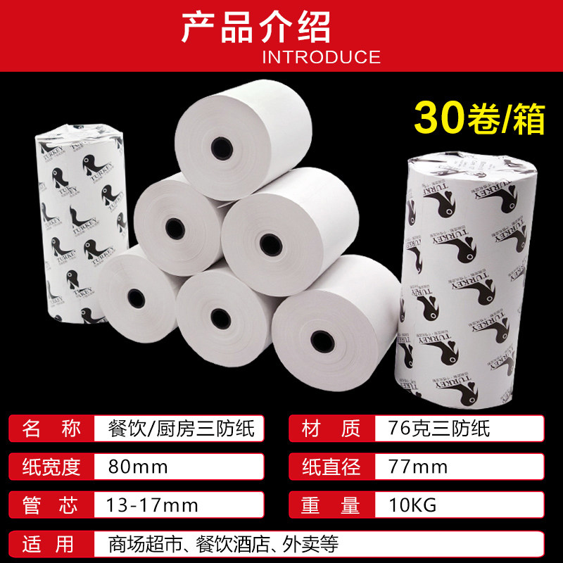 Turkey three-proof thermal cash register paper roll 80*80 kitchen meal delivery paper 80mm collection photocopying paper waterproof and oil-proof e-commerce distribution list paper thermal delivery note fresh supermarket receipt photocopying paper