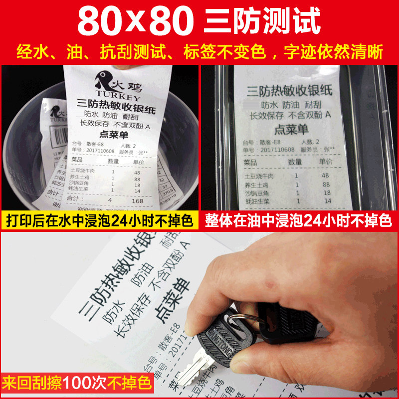 Waterproof cash register paper roll 80*80-18 rolls Three-proof 80*80-30 rolls (waterproof, oil-proof, scratch-resistant) 80*80-30 rolls (high temperature three-proof)