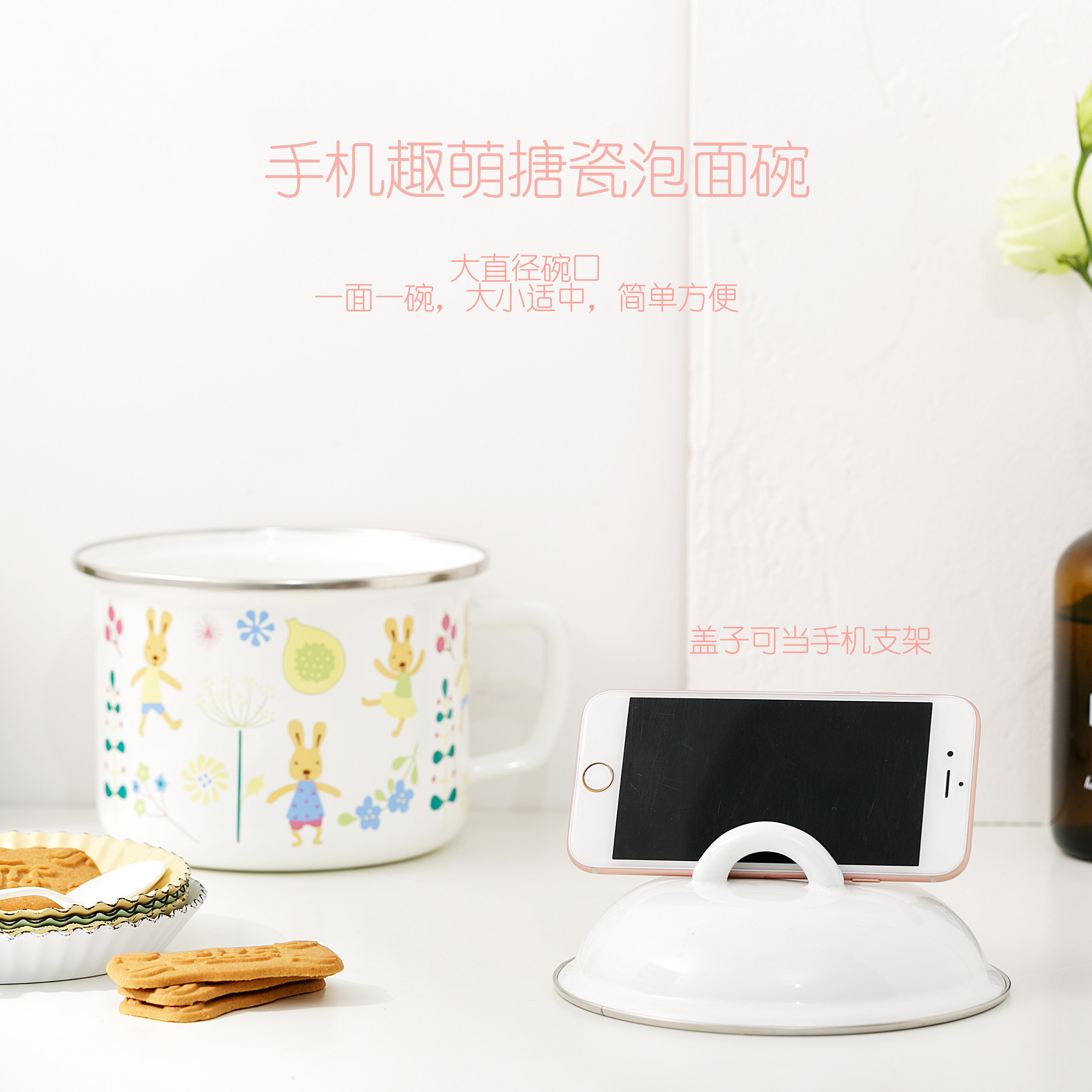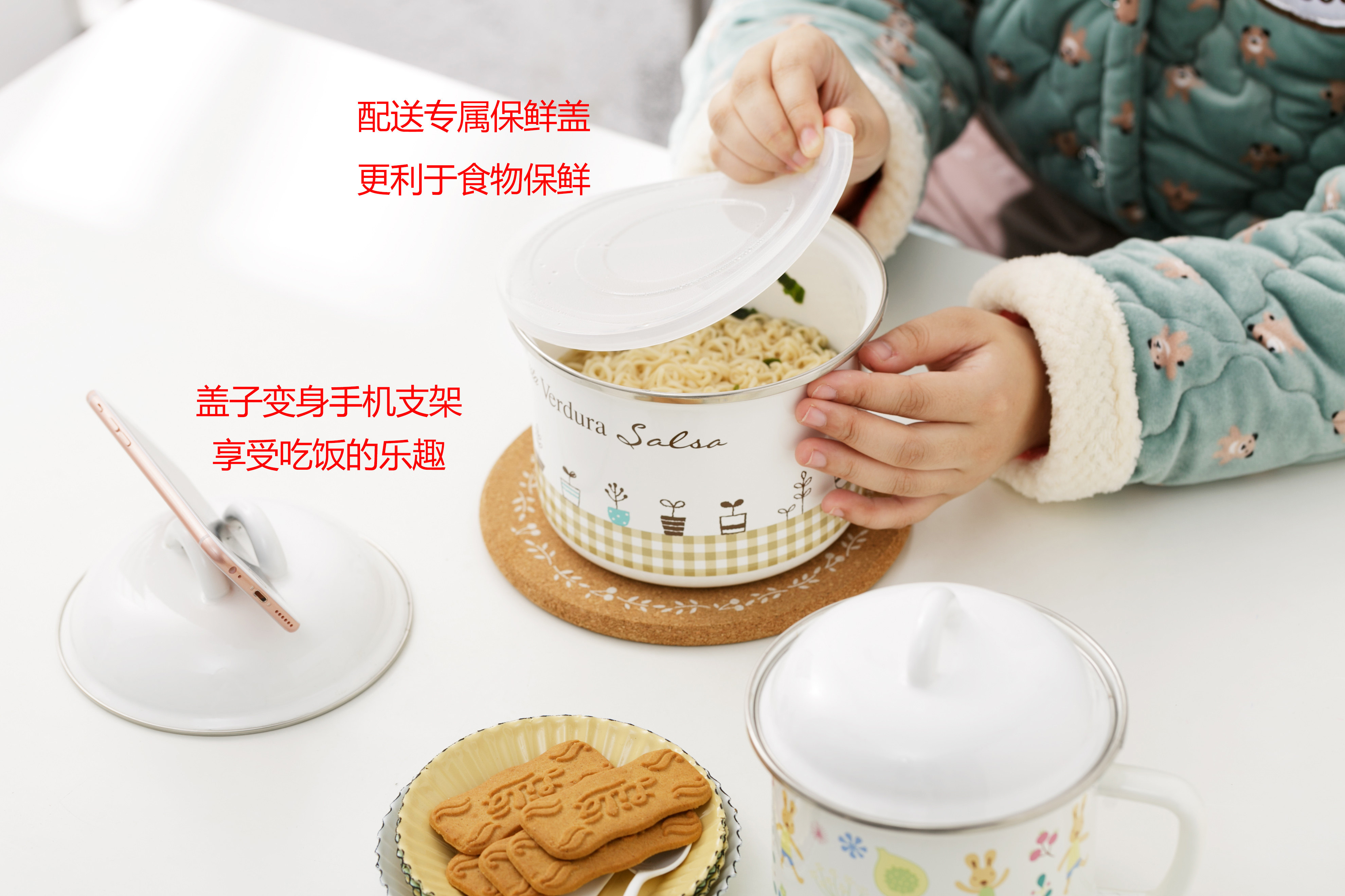BOBAO Day-style original enamel enamel cup thickened large number Cartoon Foam Noodle Bowl with lid Student Blister Bowl