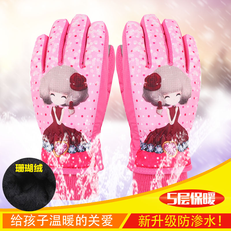 Winter boy gloves Winter outdoor cartoon baby ski children's gloves Five fingers warm play snow children's gloves Female