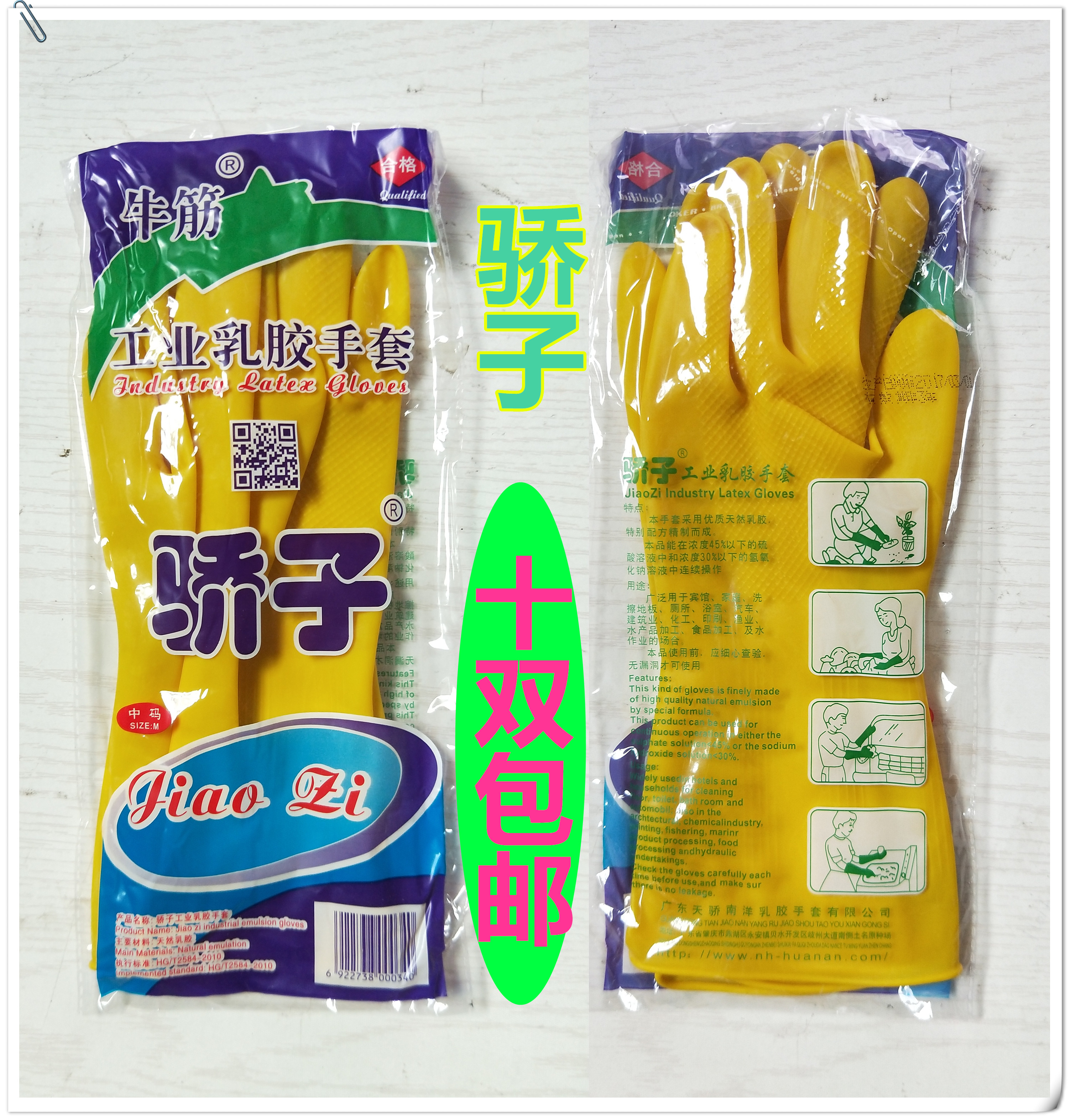 Thickened pride brand beef tendon latex industrial housework kitchen dishwashing durable rubber gloves 10 pairs